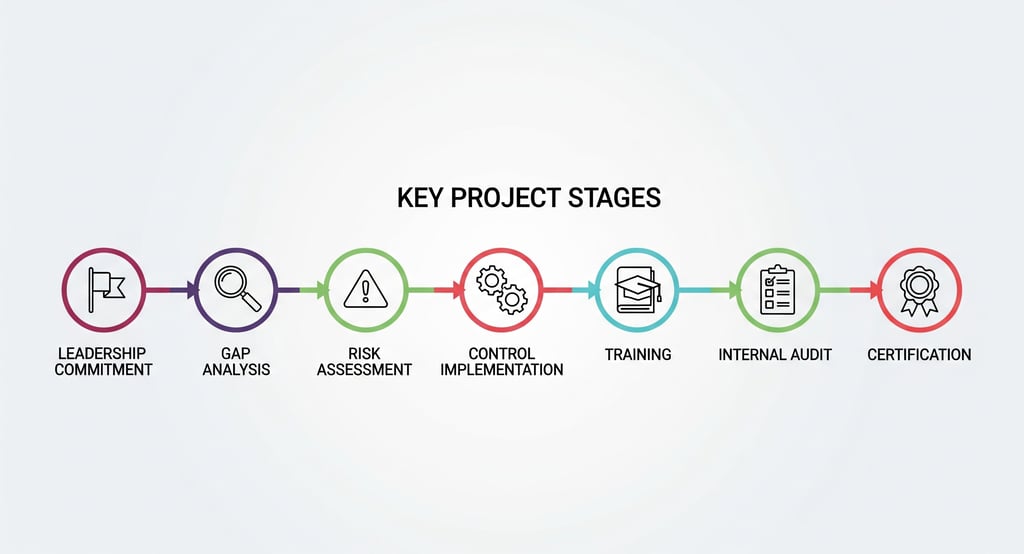 Map current state against the standard. Include all critical business units, IT infrastructure, suppliers, and relevant regulatory expectations. Define a realistic, sustainable scope.